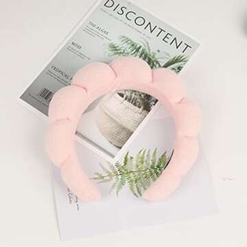 UCHARMORE Spa Headband for Women, Makeup Headbands with Triangle Powder Puff, Sponge and Terry Towel Cloth Fabric Hair Band and Versed Headband for Face Washing, Makeup Removal, Shower, Skincare