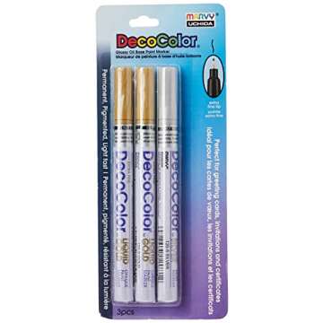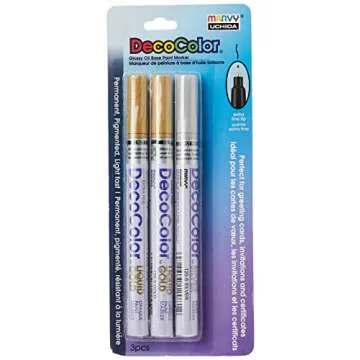 Uchida Of America 1234-3C DecoColor Extra Fine Point Pen, Silver/Gold, 3-Pack