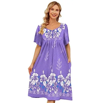 Designed with versatility in mind, this dress is suitable for all types of women, from petite to plus sizes. The easy-on, easy-off feature ensures it provides unparalleled comfort, whether you are in the kitchen, lounging in the bedroom, or enjoying a day on the patio. You can transition from indoor relaxation to outdoor enjoyment without a second thought about coverage, as this muumuu expertly balances modesty and style. Available in sizes ranging from misses small to plus size 3x, it caters to diverse body types, thereby assuring a pleasant fit for everyone.