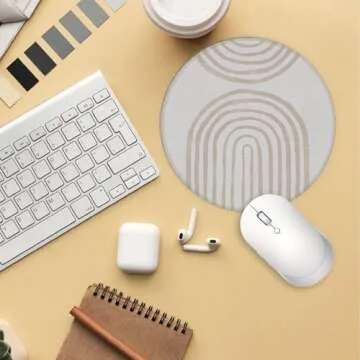 Udinaz Boho Round Mouse Pad-7.9 X 7.9 Inch Rubber Aesthetic Mouse Pad,Beige Mouse pad, Boho Desk pad.