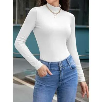 UEAL Womens Basic Tops Turtle Neck Long Sleeve Fitted Thermal Fall Layering Shirt Women Small White