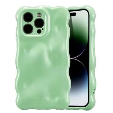 UEEBAI Ripple Case for iPhone 14 Pro Max, Cute Silver Cover Wave Shape for iPhone Case Pretty Aesthetic 3D Phone Cover, Water Ripple Shell 3D Chrome Design for Women and Girl, Green