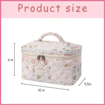 uekeboag Large Quilted Makeup Bag, Cotton Quilted Toiletry Bag for Women,Floral Coquette Makeup Bag,Cute Kawaii Travel Cosmetic Bags(06Light Pink)