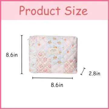 Show more Introducing the uekeboag Quilted Cotton Makeup Bag, your ideal companion for organizing beauty essentials with flair! Measuring 8.6 inches by 8.6 inches and 2.8 inches, this chic bag is perfectly sized to accommodate all your makeup, skincare products, toiletries, and even art supplies. With its eye-catching floral design, this makeup bag not only offers functional storage but also makes a bold fashion statement. The high-quality cotton material ensures that it’s durable yet soft to the touch, making it a stylish choice for anyone on the go.