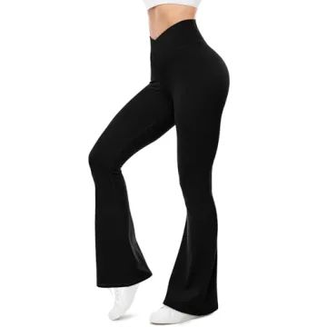 UEU Fitness Flare Leggings for Women - V Crossover, Tummy Control, 29"