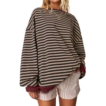 UEU Women's Oversized Striped Sweatshirt - Cozy Color Block Pullover