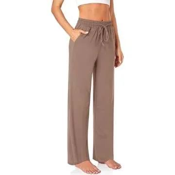 Show more Introducing the UEU Women's Casual Loose Sweat Wide Leg Yoga Pants, your go-to choice for unmatched comfort and style! Designed with the modern woman in mind, these lounge pajamas blend softness and chic appeal, ensuring you feel fabulous whether you’re unwinding at home, running errands, or heading out for a casual outing. Crafted from a lightweight, stretchy material, they feature a high-waisted design that’s not only trendy but also functional with an adjustable drawstring that guarantees a perfect fit. The relaxed, loose fit allows for unrestricted movement, making these pants ideal for both lounging and active wear.