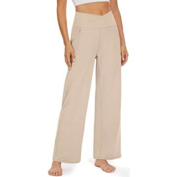 UEU Women's High Waisted Wide Leg Yoga Pants with Pockets