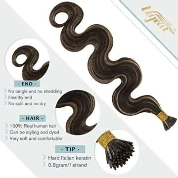 Ugeat 16 Inch I Tip Hair Extensions Remy Human Hair Body Wave I Tip Hair Extensions 40 Grams Dark Brown Highlight with Blonde #P4/27 Cold Fusion Hair Extensions