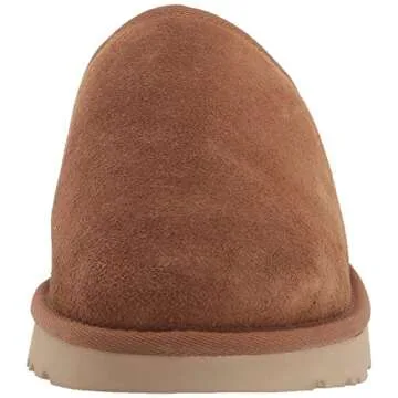 Show moreStep into ultimate comfort with the UGG Men's Classic Slip-ON Slipper. Crafted from luxurious suede, these slippers feature a stunning 10mm UGGplush wool lining that provides a soft and warm embrace, perfect for lounging around the house or stepping out for a quick errand. The added 10mm sheepskin insole delivers both cushioning and support, ensuring that you can comfortably wear them all day long. And with the Treadlite by UGG outsole, you’ll also enjoy lightweight traction that keeps you stable on both indoor and outdoor surfaces. Plus, the textile binding is made from 100% recycled polyester fibers, making these slippers not only a great wardrobe addition but also an eco-conscious choice.