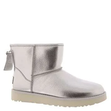 Show moreStep into a world of stylish comfort with the UGG Women's Classic Mini Logo Zip Shine Fashion Boot. Crafted with a luxurious pebbled finish metallic leather upper, these boots are not just a footwear choice; they're a statement piece that enhances your wardrobe with a touch of elegance. The rear zipper not only adds convenience but also lends a fashionable flair to this iconic design. Inside, the boot features a sumptuous 10mm UGGplush wool lining, providing warmth and a hugging fit to keep your feet cozy all day long.