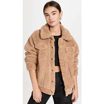 Show moreIntroducing the UGG Women's Frankie Sherpa Trucker Jacket, a stunning blend of warmth, style, and functionality. Crafted from 100% polyester, this versatile jacket features in-seam side pockets, perfect for keeping your hands cozy in soft fleece-lined hand warmer pockets. The jacket's center front closure showcases distinctive UGG logo snaps, adding a chic touch to your outfit. Additionally, the chest pockets present a fashionable flap and hidden snap closure, allowing you to securely store your essentials while maintaining an effortless look. The elegant satin lining provides a smooth feel against your skin, making this jacket a staple for both casual outings and more refined gatherings. Whether you’re heading out for a coffee run or a night on the town, this trucker jacket will elevate your style and comfort levels seamlessly.