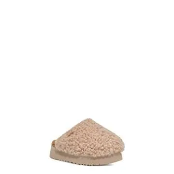 Show moreIntroducing the UGG Women's Maxi Curly Platform Slipper in Sand, the ultimate blend of comfort, style, and warmth for those relaxing moments at home. Crafted with a luxurious 17mm curly sheepskin upper, these slippers provide a plush feel that is perfect for keeping your feet cozy. Featuring a 10mm UGGplush upcycled wool lining and a 10mm sheepskin insole, your feet will feel cushioned and pampered every time you slip them on. The EVA outsole ensures durability and support, while the 2" platform height adds a touch of fashionable elevation, allowing you to strut around the house with confidence.