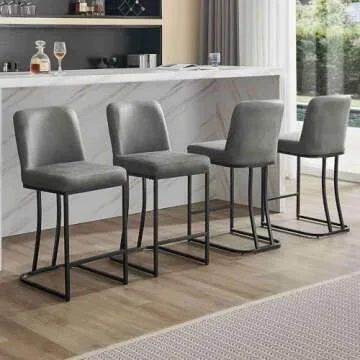 Show more This sleek and stylish bar stool is the perfect blend of modern design and functionality. Crafted from high-quality PU leather, this bar stool features exquisite stitching that enhances its appearance while ensuring durability. The elegant steel base provides stability, making it ideal for any kitchen island or counter. With a height of 26 inches, it is designed to fit tables ranging from 34 to 40 inches, providing versatile seating options for your dining experience.