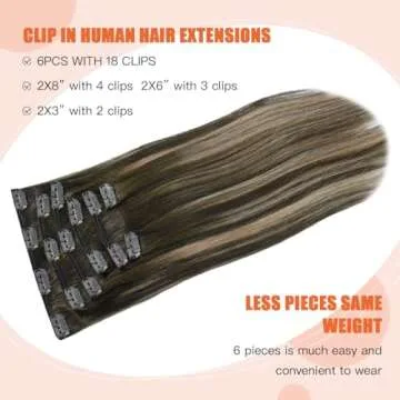Show more Introducing the UGOTRAYS Mushroom Brown Clip-In Hair Extensions, a transformative accessory that elegantly enhances your beauty with premium quality and effortlessly stunning results. Crafted from 8A grade 100% real human hair, these extensions blend seamlessly with your natural hair, ensuring you experience luxurious softness and a natural shine. The beautiful mushroom brown color perfectly fades into caramel blonde highlights, offering a balayage effect that’s on-trend and flattering on all hair types. With 20 inches of length and a weight of 70g, these clip-ins are designed to provide fullness without feeling heavy. Whether you want to add volume for a special occasion or experiment with a fresh look, these extensions are your go-to solution for all your hairstyling needs.