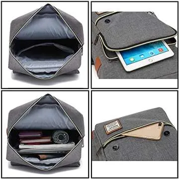 UGRACE Laptop Backpack, Grey, Unisex, 15.6" Laptop Compartment, 6 Compartments, USB Charge Port, Adjustable Shoulder Strap, PU Leather Belt