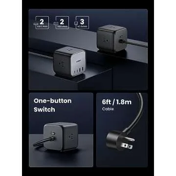 UGREEN 65W USB-C Charging Station with AC Outlet, Nexode 7-in-1 GaN Power Strip for Home, Office and Travel, with 3 AC, 2 USB C & 2 USB A, 6ft Extension Cord, for MacBook Pro, iPhone 16 Pro and More