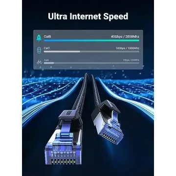UGREEN Cat 8 Ethernet Cable 6FT, High Speed Braided 40Gbps 2000Mhz Network Cord Cat8 RJ45 Shielded Indoor Heavy Duty LAN Cables Compatible for Gaming PC PS5 Xbox Modem Router 6FT