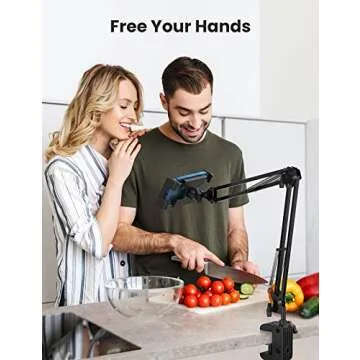 UGREEN Tablet Stand Holder for Bed Long Arm Adjustable Tablet Mount Flexible Clamp Desktop Stand Overhead Compatible for iPad Pro 10.5,9.7, Air Mini 5 4 3 2, iPhone, E-Reader, Black
