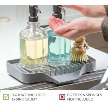 UHMER Silicone Sink Tray, Extra Large Self-Draining Sink Tray for Soap Bottles, Quick-Dry Silicone Sponge Holder for Kitchen Sink, Wide Lip Silicone Kitchen Sink Tray (Dark Gray)