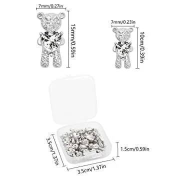 UHOMENY 12PCS Bear Nail Art Rhinestones, 3D Shiny Alloy Bear with Heart Crystal Bear Shaped DIY Nail Art Decoration Luxury Jewelry Diamond Manicure Nail Ornaments with Plastic Box, Silver