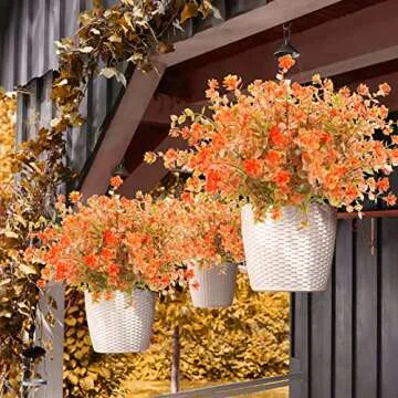 Uieke 6 Bundles Artificial Fall Flowers UV Resistant No Fade Fake Outdoor Plants Faux Plastic Plant Greenery for Outside Garden Porch Sidewalk Trim Window Box Décor Autumn Orange