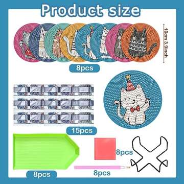Introducing the Uiifan 8 Pcs Cat Diamond Painting Coasters Kit with Holder, the perfect blend of creativity and functionality designed for cat lovers and DIY enthusiasts alike. This charming kit presents eight adorable diamond painting coasters, complete with a stylish holder, ideal for adding a unique touch to your home decor. Each set includes vibrant colored diamonds, glue, clay, and pens, offering an abundant supply for completing your artistic creations. The coasters...