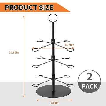 Uiifan Champagne Tree Stand for Drinks Wine Glass Holder Stand 3 Tier 12 Holders Metal Cocktail Tower Stand Display Wine Holder for Margarita Cups Tasting Wedding Bridal Shower Party(Black,2 Pcs)
