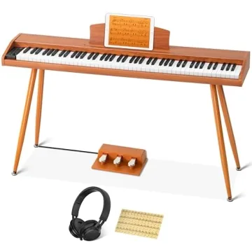 Discover the joy of music with this exceptional digital piano set, thoughtfully designed for both beginners and seasoned musicians alike. This full-sized 88-key piano keyboard stands out with its triple pedal system, music stand, high-quality headphones, music clips, an elegant piano cover, and key stickers for easy learning. The product boasts an impressive electric keyboard that imitates the satisfying touch of an acoustic piano, making it easier for novices to delve into the world of music and discover...