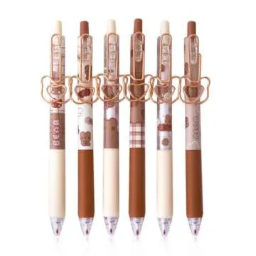 UIXJODO Cute Bear Pens, 6 Pcs, 0.5mm Black Ink, Smooth Writing, Retractable, Wax Protection, Classic Design