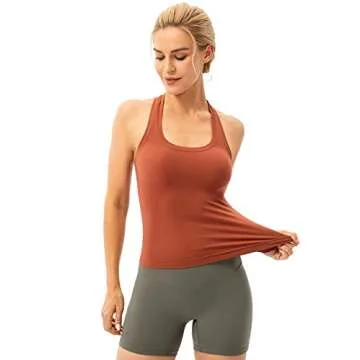 Ukaste Women's Studio Essential Racerback Tank Top Yoga Performance Workout Tops (Burnt Umber, 4)