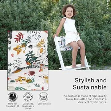 UKJE Cushion Compatible with Stokke Tripp Trapp - Soft Seat Cushion for Infants, Babies & Toddlers, High Chair Accessories, Cotton Fabric Insert, Easy to Install, Handmade in Europe (White Monkey)