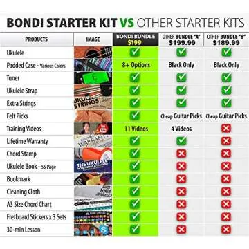 Ukulele Starter Kit (15-Accessories) Mahogany Uke, Compression Sponge Case, Aquila Strings, Felt Picks, Tuner, Chord Stamp, Chord Chart, Leather Strap, Live Lesson & More