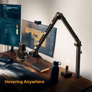 ULANZI LS24 Mic Boom Arm, Aluminum Microphone Arm Desk Mount for Podcast/Streaming/Gaming/Radio Studio with 1/4" 3/8" 5/8" Screw for HyperX QuadCast, Blue Yeti, Fifine, Shure and Most Mics