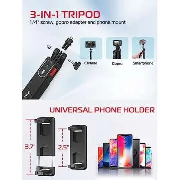 Introducing the ULANZI MA09 Extendable Phone Tripod, a game-changing tool for photographers and content creators alike! This multifunctional tripod seamlessly transforms from a compact unit into a full-sized 71" selfie stick, making it the perfect companion for anyone looking to elevate their photography or videography. Its remarkable design combines stability, versatility, and ease of use, allowing you to capture stunning shots whether you're creating content on-the-go or attending special...