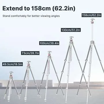 The tripod features multiple leg adjustments, allowing you to extend it up to 62.2 inches for shooting from various heights.