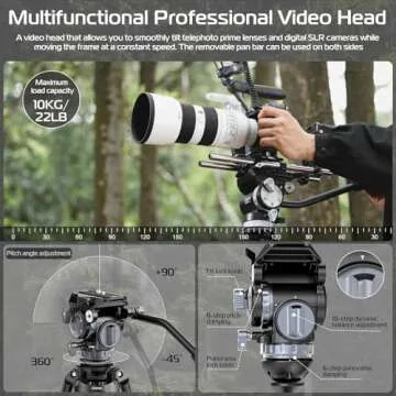Show more Introducing the ULANZI VideoFast Heavy Duty Tripod Kit, a professional-grade camera tripod designed with the serious videographer in mind. Built using high-quality carbon fiber, this tripod marries durability with portability, allowing you to capture stunning video without sacrificing stability. With a remarkable load capacity of 22lbs, it is capable of supporting even high-end cameras like the Black Magic 6K with ease. The hydraulic fluid head boasts a unique dynamic balance system that enhances filming fluidity—making it essential for video shoots. The tripod features a compact design that folds down to just 34.8 inches for easy transportation, yet extends up to an impressive 64.5 inches, providing versatility for various shooting situations.