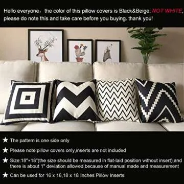 ULOVE LOVE YOURSELF Square Decorative Throw Pillows Cushion Covers Cotton Linen Black& Beige Stripes Modern Geometry Print Home Pillowcases 18 X 18 Inch,4 Pack(Stripe -1)