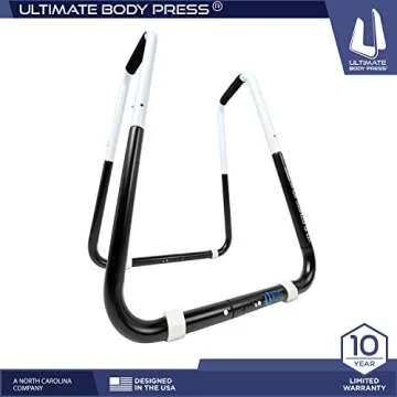 Show moreIntroducing the Ultimate Body Press Adjustable Dip Station, a premium home gym solution designed to elevate your fitness experience! This patented dip station stands at 3 feet tall, accommodating users up to 6.5 feet tall and supports up to 350 lbs of body weight. Whether you're a beginner or a seasoned athlete, this dip station features two width positions to ensure a perfect fit for every family member. Ergonomically designed with exclusive angled grips, it significantly reduces strain on your wrists and promotes proper form, allowing you to sculpt your arms, chest, shoulders, and core rapidly.