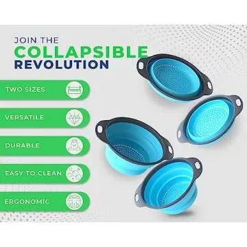 Ultimate Kitchen Strainers Set of 2 - Collapsible Silicone Colanders For Easy Storage by Comfify - Use with Pasta & Veggies or as a Fruit or Berry Bowl with Strainer - Irreplaceable for Campers - Blue