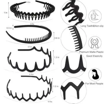 ULTIMUTE 8 PCS Fashion No Slip Effortless Plastic Headbands with Teeth Comb Black Skinny Hair Accessories Bands for Women Men Teen Girls, Matte Black