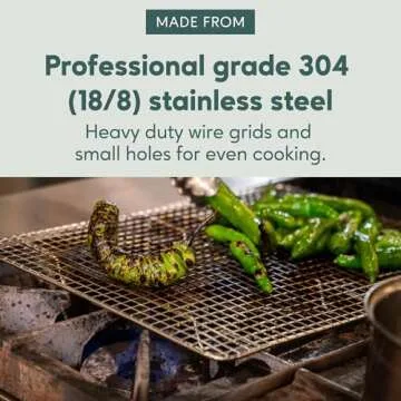 Show more Introducing the ultimate kitchen companion for baking enthusiasts - the Ultra Cuisine Heavy Duty Stainless Steel Cooling Rack. Crafted from food-safe, professional grade 304 stainless steel, this small cooling rack is engineered for durability and performance. Its sturdy design features heavy duty wire grids with small holes, making it perfect for cooling, roasting, and even baking. The smooth no-snag edges and full 1-inch height ensure optimal airflow for even cooking and cooling, elevating your baking experience to new heights.