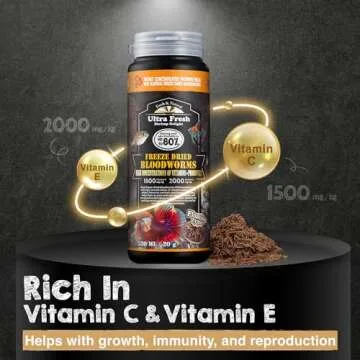 Ultra Fresh Freeze Dried Blood Worms w/High Concentration Vitamin & Probiotics, All Natural High Protein Treat for Betta, Tropical Fish