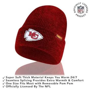 Show moreIntroducing the Ultra Game NFL Official Adults Unisex Super Soft Marl Knit Winter Beanie and Touch Screen Gloves, an essential addition to any Kansas City Chiefs fan's wardrobe. This officially licensed NFL gear combines superior style, warmth, and functionality, perfect for cheering on your favorite team during those chilly game days. Made from ultra-soft materials in prominent team colors, this set not only showcases your team spirit but also provides the quality and comfort you need to enjoy every moment outside. Designed to elevate your game-day experience while ensuring you stay warm, this beanie and glove set truly represents the spirit of the NFL.