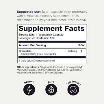 Ultra High Strength Bromelain 500mg - 3600 GDU/Gram - Highly Concentrated and Bioavailable - Third-Party Tested Formula - 120 Vegetarian Capsules - 120 Servings Per Container - Bromelain Supplement