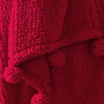 Show more Indulge in the inviting warmth and luxurious softness of the Ultra Soft Cozy Sherpa Throw Blanket with Pompom Fringe. Made from premium polyester, its rich sherpa fabric feels like a gentle embrace, enveloping you in cloud-like comfort. Measuring a generous 50" x 60", this throw blanket is not just a cozy companion for chilly evenings, but also a stylish accent piece. The unique boho pompom fringe along the shorter side adds a playful touch to your space, perfectly complementing various decors such as Nordic, Wabi Sabi, and pastoral styles. Whether it's adding charm to your sofa, couch, or bedroom, this blanket effortlessly elevates your home aesthetic while providing year-round comfort.