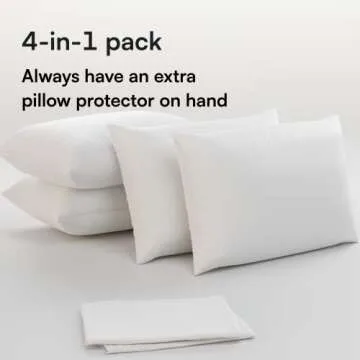 Show moreTransform your sleep experience with the Ultra Soft Pillow Protectors with Zipper! This exceptional set features four standard-sized pillow cover protectors, expertly crafted from premium-quality microfiber fabrics. With a high thread count and tight weave, these pillowcases not only enhance the durability of your pillows but also prolong their lifespan, guarding against dirt and wear. Enjoy the peace of mind that comes with knowing your pillows are shielded from unwanted contaminants and maintain their fresh appearance for longer.