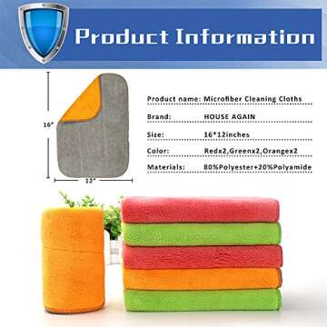Ultra-Thick Microfiber Cleaning Cloths, Super Absorbent Dust Cloths Buffing Cloths with Two Color on Two Side by House Again, Lint Free Streak Free for Tackling Any Cleaning Job with Ease, 6-Pack