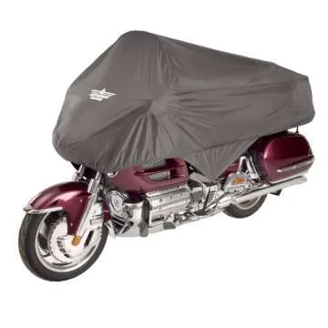 Show moreExperience unparalleled protection for your motorcycle with the UltraGard 4-458G Charcoal Touring Motorcycle Half Cover. Specifically designed for touring models, this half cover boasts a range of robust features to ensure your bike remains in pristine condition, no matter the weather. Crafted from high-quality materials, it offers a tailor-fit design that snugly wraps around your motorcycle, preventing flapping and ensuring a perfect fit. Its heavy-duty water-resistant fabric is complemented by a scorch-resistant heat shield, making it ideal for prolonged outdoor storage even in harsh environments.