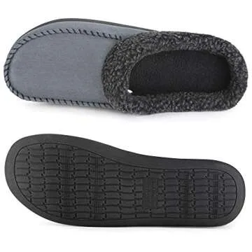 Show more Introducing the ULTRAIDEAS Men's Cozy Memory Foam Moccasin Suede Slippers, designed for optimal comfort and relaxation at home. Crafted with luxurious suede outer and a plush memory foam insole, these slippers offer a heavenly foot experience. The socks' wool-like lining feels soft against your skin, providing warmth while maintaining breathability for those cozy evenings. The slip-on design enhances convenience, allowing you to easily wear these clogs when you get home after a long day. Whether you're enjoying a quiet evening inside or entertaining guests, these stylish slippers keep your feet snug and warm.